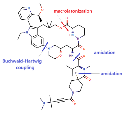 The convergent step involves amide coupling between intermediates 14a and 14b to yield 15a. Although this transformation is disclosed in literature, potential side reactions are not discussed. ChemAIRS addressed this gap by identifying plausible side products associated with this coupling (Figure 2).