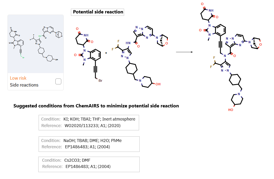 Figure 2: ChemAIRS identified a potential side reaction in the final step and proposed optimized reaction conditions to minimize its occurrence.