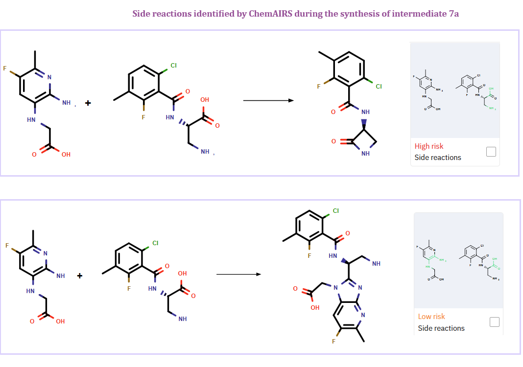Additionally, ChemAIRS identified potential side reactions during the synthesis of intermediate 7a, as depicted in Figure 1.