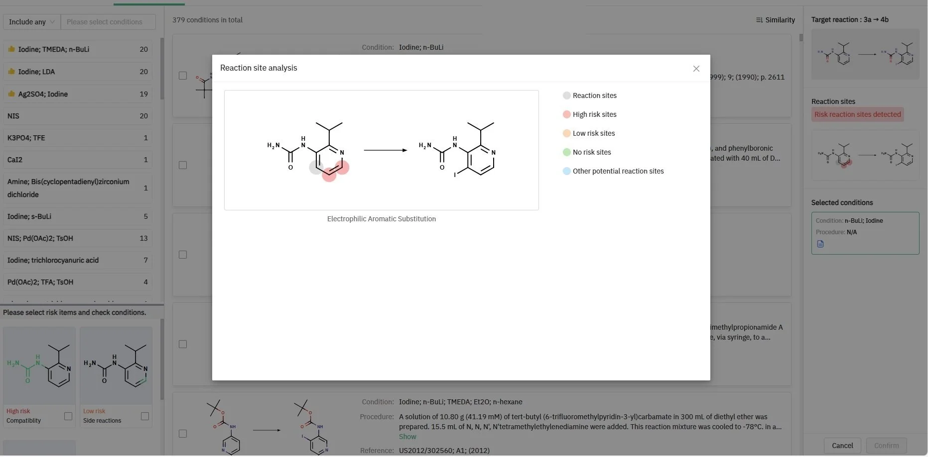 Figure 2: ChemAIRS analyzed the reaction site for compound 3a to advise users on potential side reactions