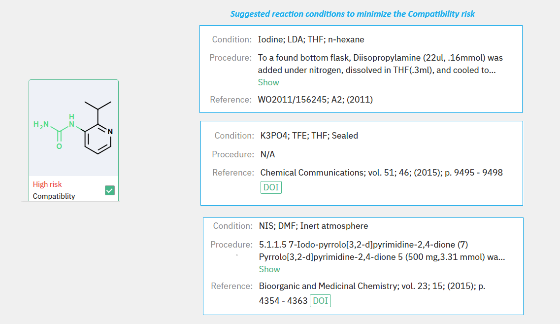 Figure 1: ChemAIRS identified functional group compatibility risk for compound 3a and suggested alternative reaction conditions
