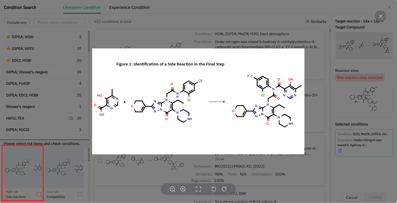 Figure 1: ChemAIRS identified side reaction risk for the last-step synthesis of target molecule