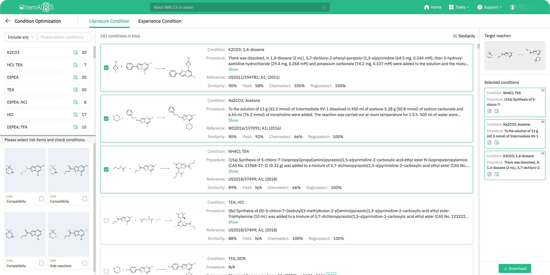 Instead of sifting through endless reaction possibilities yourself, ChemAIRS does it for you. It categorizes and organizes all feasible conditions, linking them to relevant references and ranking them by similarity to your target reaction. You get clarity, speed, and confidence in your reaction setup.